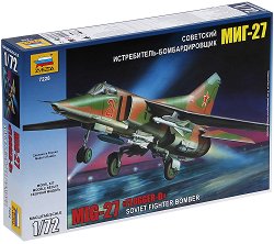 Мащабно умален сглобяем модел от пластмаса на "Zvezda" на съветски изтребител-бомбардировач - МиГ-27 "Flogger-D". Брой части: 78 Дължината на модела: 23.7 cm. За да може да сглобите и залепите този макет, ви е необходимо лепило. Елементите на модела са направени от едноцветна пластмаса. Моделът може да се оцвети с боички. За МиГ-27 МиГ-27 е съветски изтребител-бомбардировач, разработен от ОКБ МиГ през 1972 г. на базата на изтребител-бомбардировача МиГ-23Б. Създаден е за унищожаване на малки наземни мишени на бойното поле, както и за въздушни битки. Характерна особеност на този самолет са ... |