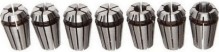 Комплектът съдържа 7 броя цанги с различен размер и затягаща гайка.