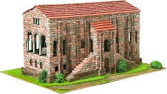 Умален модел на църква "St. María de Naranco" в романски стил на "Domus Kits". Сградата е образец на романската архитектура. Първоначално е била резиденция на крал Рамиро I, а по-късно превърната в църква. Разположена е в подножието на планината Naranco, Испания. Църквата е обявена за паметник на културата от ЮНЕСКО. Сградата е правоъгълна, на два етажа, с централно тяло и две по-къси страни. На олтара, който се намира от външната страна на храма има съхранен надпис 23 юни 848 година. Моделът е направен от картон, върху който се залепват и изграждат стените и покривите. Размери на модела: 278 / ... |