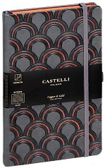 Характеристики на тефтера с ластик: размери: 13 x 21 cm; обрез на книжното тяло в тъмен графитен цвят; тонирана хартия; брой страници: 224; широки редове; разделителна лента; твърди корици с красиви барокови мотиви в меден цвят; заоблени ъгли; ластична лента за затваряне; плик за съхранение на бележки върху задната вътрешна корица; ластик - държач за молив или химикалка. Тефтерът е част от колекцията Copper and Gold на Castelli. Етикетът FSC е най-довереният знак в света за устойчиво горско стопанство. Когато купувате продукти с етикет FSC, вие помагате на горите. Суровините, използвани за ... |