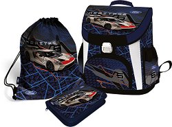 Комплектът е част от серията Ford Performance, където ще откриете още ученически продукти и аксесоари по темата. ... Комплектът от Lizzy Card се състои от раница с капак, спортна торба и ученически несесер, които ще се харесат на всяко момче. Раницата е изработена от водоустойчиви материали. Тя разполага с подплатен с дишаща материя гръб. Дъното ѝ е подсилено със здрава пластмаса. Презрамките ѝ са широки, омекотени и с възможност за регулиране на дължината спрямо ръста и комфорта на детето. Раницата разполага с едно основно отделение, в което има текстилна преграда и джоб за ученическа програма, 2 странични ... |