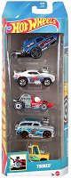 Комплектът е част от серията Hot Wheels, където ще откриете още комплекти по темата. ... Подарете на детето си часове забавление с комплекта от Mattel. Количките са изработени от отлят метален корпус с пластмасови елементи. Играчките са с разнообразен дизайн и им трябва само някоя от приключенските писти, изпълнени с безброй невероятни препятствия, за да започне състезанието! Всяка количка е с приблизителна дължина 6 cm. ... |