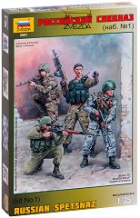 Комплект от 4 мащабно умалени фигури от пластмаса на руски сили за специални операции - "СПЕЦНАЗ" на "Zvezda". Брой части: 29. Средна височина на фигурата: 50 mm. Мащаб на комплекта: 1:35. Елементите на модела са направени от едноцветна пластмаса. Моделът може да се оцвети с боички. За СПЕЦНАЗ Силите за специални операции на Руската федерация представляват елита на въоръжените сили и органи за сигурност. Разполагат с едни от най-добре подготвените подразделения от този вид в света. Командването на Силите за специални операции на Въоръжените сили на Руската федерация е новосъздадена структура в ...