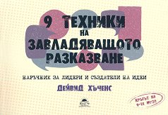 Кръгът на деветте музи. ... В ръцете си държите уникално ръководство по лидерство! 9 техники на завладяващото разказване е книга за това как всеки да открие в себе си две неща: точния глас и точната история, които да въздейства на точните хора в точния момент. От вечерята със семейството вкъщи, през изпита в университета, съдбовното интервю за работа (или дългоочакваната първа среща) и съвещанието с колегите в офиса, до лекция пред стотици хора на сцена с професионално осветление и техника, когато всички ще гледат именно към вас. Тази изключително практическа книга ни провокира с куп примери от реалния живот - на ... |