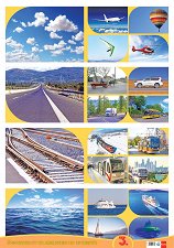 Комплектът включва 7 учебни табла по Безопасност на движението по пътищата за работа с деца в 4. група на детската градина. Темите на таблата са: табло № 1: Градът / селото в което живея; табло № 2: На улицата; табло № 3: Пътувам с автобус, трамвай, тролейбус; табло № 4: Моят път до детската градина; табло № 5: Изправност на велосипеда; табло № 6: Кои знаци познава велосипедиста; табло № 7: На площадката за велосипедисти. Всяко табло е с приблизителни размери 50 x 70 cm и има лайсни в горната и долната си част. По зададената тема има и задачи, с които да се провери и затвърди наученото. ...