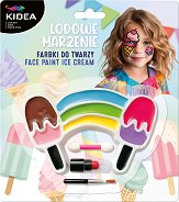 Комплектът за рисуване върху лице Ice Dream от Kidea е чудесен избор за маскиране по повод детски партита, карнавали, рождени дни или други събития. Той включва всичко необходимо за създаване на ефектен грим, а именно 8 цвята бои - жълт, зелен, син, тъмнорозов, лилав, светлорозов, кафяв и черен, двустранен апликатор и четка за нанасянето им и червено червило. Боичките покриват много добре, разнасят се лесно и са безопасни за кожата, което е потвърдено от съответните лабораторни изследвания. Комплектът ще осигури часове творческо забавление за малки и големи. Той е подходящ и за грим маскировка за Хелоуин. На гърба на ... |