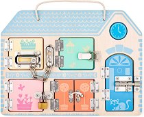Къщата с ключалки от Woodyland е създадена специално за малките изследователи, които обичат да отключват, затварят и откриват нови неща. Изработена от висококачествена, гладко обработена дървесина, тя е напълно безопасна за деца. Играчката включва различни механизми като ключалки, резета, катинари, вериги и кукички, които стимулират детската сръчност и мислене. Всяка вратичка и прозорец крие малка сцена, превръщайки играта в откривателско приключение. Цветовете са ярки и нетоксични, което привлича вниманието и насърчава играта. Тази играчка подпомага развитието на фината моторика чрез отключване и заключване на ...