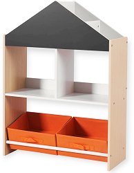 Етажерката на GINGER HOME ще бъде чудесно допълнение за стаята на вашето дете. Тя е оформена като симпатична къщичка и е подходяща за използване както у дома, така и в детската градина. Секцията разполага с 4 отделения за книги и дребни предмети на нивото на покрива, 1 открит рафт с разделител под тях и 2 текстилни кутии в долната част. На етажерката можете да подредите играчки, книжки и аксесоари, така че детето да може да ги вижда и лесно да си избира измежду тях. Кутиите се закрепват за рамката под ъгъл, така че детето да има пряка видимост към съдържанието им. Те могат да се вадят изцяло и да се ползват и ... |