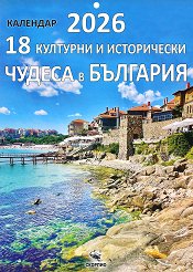 Календарът за 2026 г. е дванадесетлистов и съдържа красиви картини на българската природа, дело на художника Янко Янев. Съдържа: национални и международни празници; лунен календар; зодии; имени дни; страница за лични, семейни или фирмени празници. Размери: в сгънато състояние: 30 x 30 cm. в разгънато състояние: 60 x 30 cm. ... |