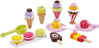 Дървеният комплект за игра от "Lelin Toys" ще стимулира въображението на малчуганите. С различните сладоледи малките сладкари ще могат да очароват гостите в сладкарницата си, като им сервират от любимите сладки изкушения - сладолед във фунийка, сладоледени бисквити или класическия сладолед на клечка. Комплектът се състои от 25 броя дървени елемента и е съвместим с кухните и магазините на "Woodyland". ... |