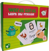 Комплектът ще запознае детето ви с имената на животните на английски език, докато се упражнява да пише. Той е подходящ за деца над 4-годишна възраст и се състои от 26 карти и маркер. Всяка карта разполага с картинка на животно, под което има изписано името му на английски и място с пунктирани линии, които детето ви да повтори. За да улесни ученето, върху всяка карта в скоби е изписано и правилното произношение на думите. Маркерът се изтрива с помощта на кърпа или гъба, след което отново може да се пише по картите. Всяка карта е с размери 16 x 10.5 cm. ... |