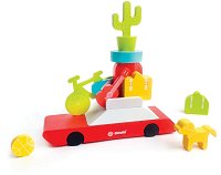 Малчуганите ще се забавляват с играта от Svoora. Те могат да балансират дървени фигурки върху ретро кола като натоварят превозното средство с китара, кактус, куче, куфари, колело и баскетболна топка. Играта е подходяща от 1 до 4 играчи като за целта в комплекта е включено зарче. Участниците могат да хвърлят зарчето и да поставят върху колата предмет, който отговаря на падналия се цвят. Фигурките са със заоблени ъгли за по-голяма безопасност за малчуганите. Те могат да подобрят своята наблюдателност, фина моторика и координация око-ръка, докато играят. Приблизителните размери на колата са 25 / 18 / 6 cm. ...
