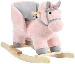 Детската люлка "Cookie" на "Moni" ще е чудесно забавление за вашето малко дете. За максимален комфорт и безопасност тя е снабдена с мека седалка с обезопасителен колан, 2 дръжки за стабилен захват и дървени стойки от двете страни, на които детето да постави крачетата си. По този начин, докато вие го люлеете, то ще бъде по-стабилно. За да бъде още по-забавно люлеенето, играчката разполага с музикални функции, които можете да активирате като стиснете ушите на еднорога. За работата на музикалните функции ще ви бъдат необходими 3 батерии тип 1.5 V LR44, които можете да закупите отделно. Характеристики: ... |