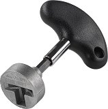 Т-образната отвертка на Wolfcraft има дължина 104 mm и е подходяща за работа на труднодостъпни места. Разполага с ергономична дръжка и магнитен държач с 1/4" шестостенен (HEX) захват, който е подходящ за накрайници. Отвертката се предлага в комплект с накрайник, предназначен за отвиване и завиване на винтове с куки и халки с диаметър до ∅ 6 mm. ... |