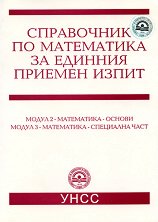 Справочник по математика за единния приемен изпит. Модул 2 - Математика - основи. Модул 3 - Математика - специална част. ... Справочникът е предназначен за кандидат-студенти в Университета за национално и световно стопанство. Структурата и съдържанието му са съобразени с програмите по математика за "Единния приемен изпит" ( модул 2 и модул 3), както и с "Ръководство за самоподготовка" - обща част (модул 2) и специална част (модул 3 "Математика"). Поради малкото време за отговор на тестовите въпроси справочникът е структуриран и синтезиран, така че да послужи за бърза справка по време на ... |