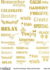 Декупажната хартия на "CADENCE" има дизайн с надписи и орнаменти в златист цвят. С нея може да превърне предметите за декориране в истинско произведение на изкуството. Направете украшения за всеки повод от стирофом или от дърво. Характеристики: оризова хартия плътност: 25 g/m 2 формат A3 може да се използва както цялостно, така и чрез изрязване на отделни мотиви предназначена за дърво, пластмаса, картон, платно, стъкло и други хартията е подходяща и за опаковане на подаръци, заради красивите ѝ мотиви Начин на употреба: Почистете и подсушете добре повърхността, върху която ще правите ... |
