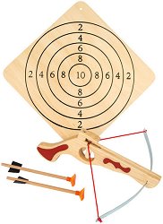 С дървения арбалет от Small foot малките стрелци могат да тренират точността си и да се забавляват. Към комплекта са добавени мишена и две стрели, които децата да използват в своята игра. Благодарение на висококачествените гумени вендузи, стрелите се залепват добре върху гладки повърхности. Размерите на арбалета са приблизително 33 / 32 / 12 cm. Размерите на мишената са приблизително 30 / 30 / 0.5 cm. ... |