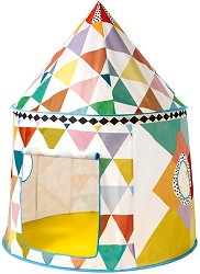 Детската палатка на "Djeco" ще позволи на малчуганите да фантазират и да развиват творческите си заложби и да се забавляват. Ще преместват своето убежище или приказен дом, в стаята или на открито. Палатката е декорирана в разноцветни триъгълници. Тя има 2 кръгли прозореца и врата, отваряща се чрез ролка. Детската палатка е с лека конструкция от 5 рейки и е лесна за сглобяване. Освен това, тя ще съхранява играчките на децата ви, без да са разхвърляни навсякъде. Нека приключенията започнат още сега! Размерите на палатка в разпънато положение са - диаметър ∅ 106 cm и височина от 140 cm. ... |