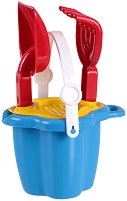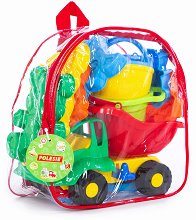 Когато ходим на плаж, задължително трябва да аксесоари за игра с пясък. Точно затова този комплект е идеален за вас! Той се състои от раница за съхранение и пренасяне, камионче, 6 формички за пясък, кофичка, лейка, гребло и лопатка. С тях детето ще може да строи замъци, кули, градове или каквото пожелае. Елементите са изработени от пластмаса. Раницата е прозрачна и разполага с едно отделение, което се затваря посредством цип. Освен това тя има къса дръжка за носене в ръка. Забавлението е гарантирано! Раницата за съхранение е с размери 30 x 20 cm. ... |