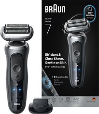 Електрическата самобръсначка Series 7 72-G1200S на Braun предлага по-близко и по-бързо бръснене от всякога* и е създадена за мъжете, които ценят прецизността и нежната грижа. Разполага с 3 режима на бръснене – Turbo, Standard и Gentle, които позволяват да персонализирате грижата за лицето според вашите предпочитания и нужди. Turbo режимът осигурява по-бързо бръснене* с до 28.5% повече режещи движения в секунда**, Standard режимът предлага оптимален баланс между бързина и нежно бръснене, а Gentle режимът е създаден за максимален комфорт. Подвижната 360° SkinFlex глава и трите гъвкави Flex ножчета се адаптират към ...