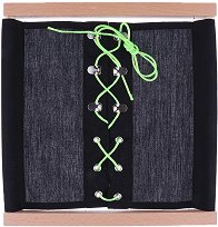 С този комплект, малчуганът ще се научи да нанизва и връзва връзки, да закопчава ципове и копчета за нула време! Той е изработен от дърво и текстил, и е подходящ за деца над 3-годишна възраст. Състои се от стойка и 12 рамки с различни методи на закопчаване - катарами, копчета, закопчалки, кукички, връзки и други. Комплектът ще развива детската координация и концентрация. По този начин детето неусетно ще се научи само да си връзва връзките на обувките, да закопчава циповете на якета и панталони, и много други. Сглобената стойка е с размери 32 x 95 cm. За метода на Монтесори Революционен образователен метод - така ...