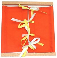 С тази рамка, малчуганът ще се научи да нанизва и връзва панделки за нула време! Тя е изработена от дърво и текстил, и е подходяща за деца над 3-годишна възраст. Целта е детето да се опита да отвърже и махне панделките от текстилното парче, след което да ги наниже и завърже наново. Това простичко действие ще развива детската координация и концентрация, като междувременно неусетно ще го научи само да си връзва връзките на обувките. Рамката е с размери 25 x 26 cm. За метода на Монтесори Революционен образователен метод - така би звучало най-краткото обяснения на подхода "Монтесори". Но какво точно обхваща ...