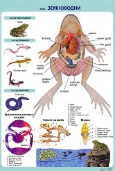 Таблото "Земноводни" е ламинирано и съдържа информация за: разред безопашати; разред опашати; разред безкраки; кръвоносна система на жаба; скелет на жаба; мозък. ... |