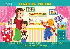 С Таблото на успеха детето само отчита как се е справило с ежедневните си задачи. Това може да направи с помощта на стикерите, включени в комплекта. За определен брой изпълнени задължения през деня, се определя награда, която може да бъде прегръдка, семейна игра на карти, разходка в парка, пикник в гората и много други. 8 -те цветни табла са под формата на книжка, в която са включени и 8 черно-бели, в които, вие родителите, можете да напишете вашите собствени задачи, да украсите и оцветите. Таблата са достатъчни за проследяване на задълженията за около 4 месеца. Всяко табло е с размери 21.5 x 41.5 cm. В горната им част ... |