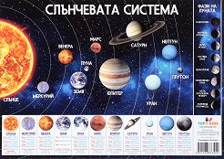 Космосът е толкова красив, необятен и мистериозен! А Слънчевата система е една важна и позната част от него, с която всяко дете непременно трябва да се запознае. Образователното табло Слънчева система съдържа в себе си всичко, необходимо за любознателния малчуган! На него са прецизно са изобразени деветте планети от слънчевата система и техните наименования както и фазите на луната. Помогнете на вашето дете да се гмурне смело в опознаването на вселената като развие своята памет и обогати възприятията си. Учебното табло е изработено от разпенено пвц и е с размери 30 x 42 cm. В горната му част има маркировка с цел по- ... |