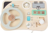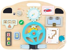 Автомобилното табло ще зарадва децата. То разполага с волан, зъбно колело, гориво с въртящ се бутон, копчета, ключ, шаблони на коли, скоростен лост, светофар и вратичка с панти. Когато вратичката се отвори, се появява картинка на път. Светофарът разполага с въртящи се двустранни бутончета - от едната страна имат цвят, а от другата пътен знак. Ключът може да се върти. Дъската има дръжка, чрез която може лесно да се пренася. Малчуганът може да подобри своето въображение, координация око-ръка, сръчност и фина моторика, докато се забавлява. Приблизителните размери на таблото са 40 x 30 cm. За метода на Монтесори ... |
