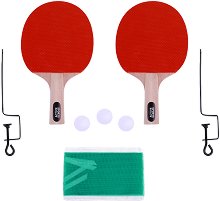 Комплектът за тенис на маса е подходящ за всички любители на спорта. В кутията са включени 2 хилки, 3 топчета, мрежа и 2 подпори за маса. Хилките разполагат с ергономични дръжки и са удобни за захващане. Забавлявайте се и развийте вашите двигателни умения. Приблизителните размери на хилките са 25.5 cm. ... |