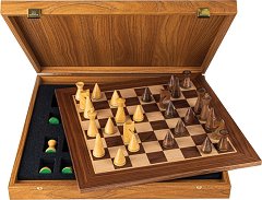 Понякога шахът се превръща в много повече от игра. Докато за едни предстоят първи стъпки в местенето на фигури и обмислянето на стратегически ходове, за други шахът вече е страст и любимо хоби. А за трети може да е дори и начин на живот, протичащ в турнири. За почитателите на играта шах от "Manopoulos" предлагат луксозен комплект, който ще бъде подходящ подарък тях. Той се състои от кутия за съхранение, основа за игра на шах, изработена от месинг и 32 метални фигури в сребрист и златист цвят. Кутията е изработена от висококачествен дървен материал, а от вътрешната страна разполага с място за съхранение както ...