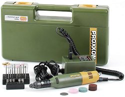 Мини бормашина/шлифовалка предназначена за фрезоване, пробиване, полиране, рязане, гравиране и др. Тя е много подходящ инструмент за сглобяване на модели, за дърворезба, електронни хобита. Подходяща за бижутери, художници, скулптори, зъботехници и т.н. Работи тихо и без вибрации. Корпусът, изработен от полиамид, подсилен с фибростъкло, е изключително здрав и стабилен. Шийката е с диаметър 20 mm, което позволява монтирането на машината на стойки и държачи на Proxxon Micromot. Ниският волтаж (12 V DC) и 40 W номинална мощност гарантират оптимално ниво на безопасност. Комплектът съдържа: адаптер за 220 - 240 V ... |