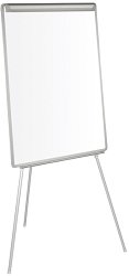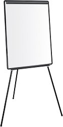 Флипчартът от "Bi-Office" е бяла дъска с магнитно покритие и е на статив. Разполага с 3 крачета, които могат да се регулират на височина. Таблото е с размери 70 х 100 cm и е подходящо за писане с маркери за бяла дъска. За почистването се използва гъба, но е препоръчително периодичното почистване със спрей. Таблото разполага с 2 изтеглящи се магнитни рамена, които увеличават площта за презентиране до 195 cm. Дъската има механизъм за хартия, с който лесно се захващат блок листа за флипчарт с различни отвори. Освен това разполага с поставка за използваните маркери и гъба за почистване. Флипчартът е с лека ... |