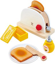 Всеки малчуган ще може да направи вкусна закуска за цялото семейство с комплекта на "HaPe" - филийки с масло и мед! Елементите от комплекта са изработени от дърво и са оцветени с безвредни бои на водна основа. Тостерът с филийка в него е с размери 18 / 18 / 11.2 cm. ... |