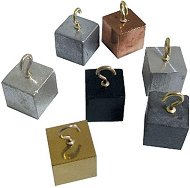 Комплект от кубчета с еднакъв обем, изработени от различни метали и сплави, като мед, месинг, олово, цинк, стомана, алуминий. Всяко кубче е с размер на страната 3.2 cm и е снабдено с кука за закачане. ... |