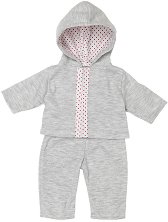 Комплектът е част от серията Skrallan, където ще откриете още интересни продукти. ... Добавете стил и уют в гардероба на вашата кукла с красивия, нежно сив комплект от Micki. С изящни детайли в бели и червени точки, той придава очарователен и модерен вид на всяка кукла. Якето с качулка и панталонът са създадени с внимание към детайла, за да направят играта още по-реалистична и забавна. Дрешките са идеални за всички кукли с височина до 36 cm. ... |