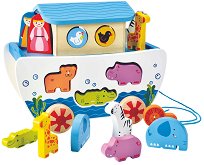 Играчката от HaPe ще запознае децата с библейската история за Ноевия ковчег. В комплекта са включени кораб, мини фигурки на Ной, жена му и животни. Малчуганите могат да поставят фигурките на животните в кораба. Те ще се зарадват на мечетата, крокодилите, хипопотамите, слончетата, жирафчетата и зебрите. Корабът разполага с врата, която може да се отваря и има въже за дърпане. Превозното средство е боядисано с бои на водна основа. Дайте шанс на малчуганите да разиграват ролеви игри като помогнат на Ной и жена му да приберат всички животни в кораба. По този начин те могат да подобрят своето въображение, координация око- ... |