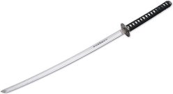 Мечът Manga Sword на Boker се характеризира с голямо внимание към детайла и със сигурност ще ви впечатли от пръв поглед. Катаната е забележителен и богато украсен колекционерски меч, който може да се превърне в акцент в цялата ви колекция. Този меч силно напомня на традиционен самурайски меч. Острието от въглеродна стомана е фино полирано и има декоративен режещ ръб. Тежката изкусно украсена цуба идеално се съчетава с обкова на черната дървена ножница, а комбинацията от бялата обвивка на дръжката и подложката, наподобяваща кожа на скат манта, създава уникален ефект. Характеристики: обща дължина: 109 cm дължина на ... |