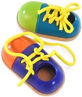 Навярно сте се сблъсквали с дилемата как да научите детето си само да си завързва обувките. Без да се цапате, докато показвате “магическият” възел върху вашите собствени обувки, можете да го демонстрирате върху този сладък модел. Дървената обувка има достатъчно дълги връзки, за да опитвате различни техники за нанизване и завързване. И бъдете сигурни, че неусетно детето ви ще се научи само да си връзва обувките! ... |