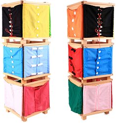 С този комплект, малчуганът ще се научи да нанизва и връзва връзки, да закопчава ципове и копчета за нула време! Той е изработен от дърво и текстил, и е подходящ за деца над 3-годишна възраст. Състои се от стойка и 12 рамки с различни методи на закопчаване - катарами, копчета, закопчалки, кукички, връзки и други. Комплектът ще развива детската координация и концентрация. По този начин детето неусетно ще се научи само да си връзва връзките на обувките, да закопчава циповете на якета и панталони, и много други. Сглобената стойка е с размери 32 x 95 cm. За метода на Монтесори Революционен образователен метод - така ... |