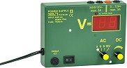Учебният уред от NTL Austria доставя захранване за постоянно и променливо напрежение с по-голяма товароносимост. Изходната мощност е отлична: 24.2 V AC при 7.2 A AC и 23.5 V DC при 6 A и по-малко от 4 Vpp пулсации. Той притежава три термични прекъсвача, които предпазват от претоварване и къси съединения. Освен това уредът разполага с LED индикатор за показване на активна двойка изходни гнезда, 7-сегментен, триразряден LED дисплей и голям превключвател за показване на постоянно или променливо напрежение. Корпусът му е изработен от ABS пластмаса и притежава 2 дръжки за лесно транспортиране. Уредът е подходящ за ученически ... |