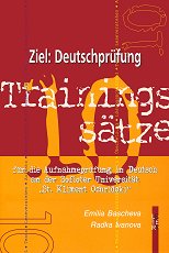 Второ издание. ... Учебното помагало Ziel: Deutschprüfung гарантира ефективна подготовка за кандидатстудентския изпит по немски език за Софийски университет Св. Климент Охридски според актуалния изпитен формат. Ziel: Deutschprüfung съдържа 10 примерни изпитни варианта със следните компоненти: tests; leseverstehen; aufsatz; ubersetzung. Помагалото Ziel: Deutschprüfung съдържа ключ с отговори и дава възможност за: ориентация в трудността на кандидатстудентския изпит по немски език; трениране на пълния изпитен формат или на отделни изпитни компоненти чрез самоподготовка или работа с учител; ...