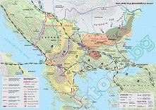 Характеристики: географска мрежа; хидрография; сенкорелеф на територията; територия на Византия след падане на България под византийска власт 1018 г., райони на въстания; центрове на въстания; граница на България при цар Самуил, граница на Византия, 1185 г., граница на освободената българска територия в края на 1187 г.; военни походи; кръстоносни походи; варварски нашествия; битки и обсади; столици и градове; надписи на хидрография, държави, племена, военно-административни области, историко-географски области и други; легенда. Картата е двустранно ламинирана. Изработена е от винил с пластмасови лайсни в ... |