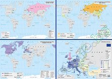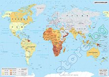 Характеристики: географска мрежа; държави; бивши колонии, разделени в групи според годините на извоюване на независимост; държавни и спорни граници; столици; години на обявяване на независимост; хидрография и надписи на хидрография, държави, острови и други; легенда. Картата е двустранно ламинирана. Изработена е от винил с пластмасови лайсни в долния и горния край и шнур на горната лайсна за окачване на картата. Размерите на стенната карта са 140 x 100 cm. ... |