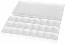 Бялата пластмасова палитра от Слънчоглед е във формата на кутия с капак за затваряне. Тя разполага с 24 броя дълбоки ванички, в които могат да се разположат различни бои. Палитрата е подходяща за съхранение на маслени, темперни, акрилни бои, течни акварелни и цветни тушове, както и за подреждане на малки арт предмети. Дълбоките ѝ ванички са подходящи за по-голямо количество бои, а механизмът на затваряне с капак предотвратява изсъхването на боята за няколко часа. За разлика от класическите дървени палитри, пластмасовата се почиства лесно с вода и сапун и може да се използва многократно в продължение на години. ...