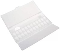 Бялата пластмасова кутия за акварелни бои на Слънчоглед е подходяща за подреждане на 24 цели блокчета с акварелни бои или 48 половинки. Палитрата е сгъваема, изработена от бяла пластмаса. Както познатите ни кръгли палитри, така и тази има отвор за палеца за по-удобно и стабилно захващане при работа. Подходяща е и при рисуване с акварел, тъй като ваничките са достатъчно дълбоки, за да се използват за разреждане на боята с вода, а неутралната бяла основа позволява на рисуващия да вижда точния цвят. За разлика от класическите дървени палитри, пластмасовата се почиства лесно с вода и сапун и може да се използва многократно ...