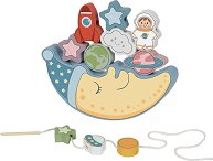 Търсите ли играчка, която съчетава баланс и низане в едно? А вашето дете обича ли да изследва Космоса? Може да го направи със занимателната игра от Tooky Toy – специално създадена за малките астронавти! Комплектът включва 10 цветни дървени блокчета с космически мотиви – ракети, астронавти, звезди, НЛО и планети, лунна платформа със симпатично усмихнато лице, върху която блокчетата се подреждат, както и дървена игла със здрав шнур за нанизване. След приключване на играта за баланс превърнете блокчетата в цветни мъниста и ги нанижете на шнура, за да упражните фината моторика, концентрацията и творческото мислене. ... |