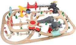 Малчуганите ще се впуснат в скоростни приключения с влакчето с релси. Комплектът включва дървени релси, мост, надлези, бариери, локомотив, вагони с магнитно закрепване, хеликоптер, камиончета, колички, дървета, храсти, пътни знаци, светофар, фигурки на животни и хора, придържащи елементи, сгради, магнитен кран и кръстовище. Децата могат да спазват правилата за движение като се научат да разпознават пътните знаци. Влакчето може да премине през гара, хеликоптерна площадка, мост и строителен кран. Комплектът е подходящ за разиграване на ролеви игри. Дайте шанс на децата да развият своето въображение, логическо мислене, фина ... |
