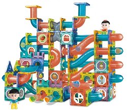 С магнитния конструктор от Sonne, децата ще могат да сглобят постройки, фигури и дори писта на различни нива. Към комплекта са включени фигурки и топчета. С тях децата ще могат да играят самостоятелно, както и да ги спуснат по вече построената писта. Те ще се търколят през дългия лабиринт, а когато излязат играта започва отново. Конструкторът се състои от 268 части. Играта с комплекта ще развие въображението, фината моторика, координация и усещане за цветове и форми на вашето дете. ... |